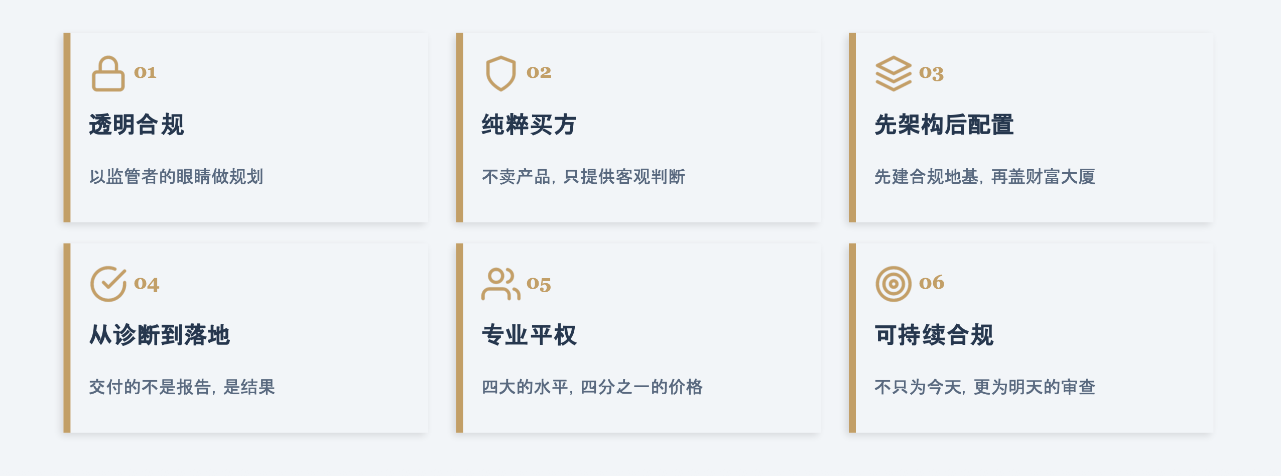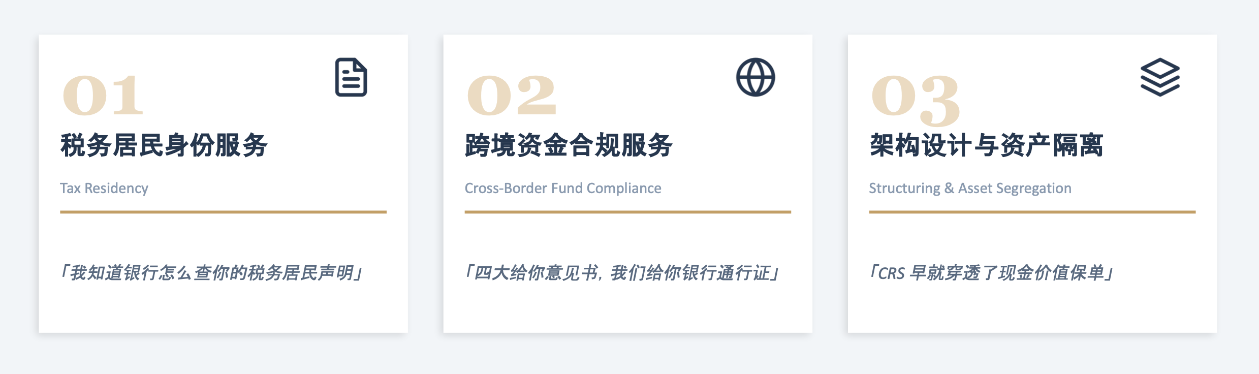 CRS/AML合规 + 国际税务架构 + 家族传承规划 — 一站式专业服务
